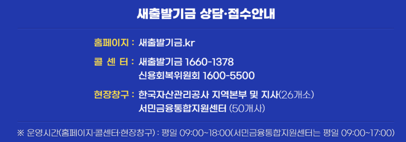 오프라인 관련한 문의 사항은 새출발기금 (1660-1378)이나 신용회복위원회 (1600-5500)으로 문의 가능하고, 방문일자 및 시간을 예약하고 신분증 지참 후 신청 가능합니다.