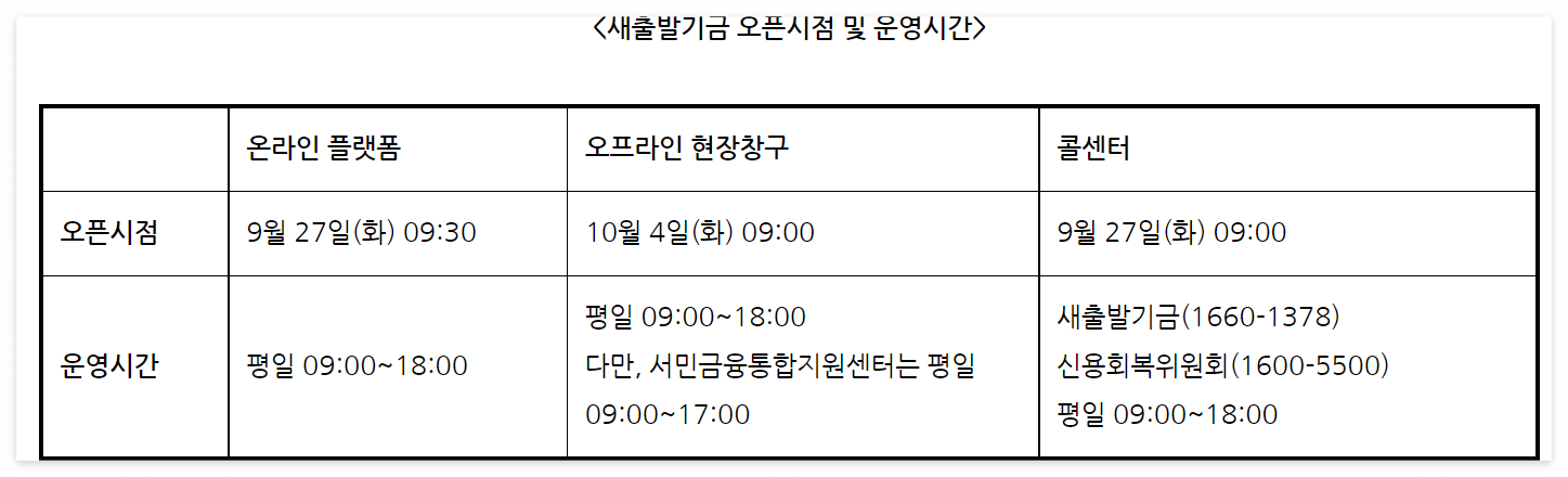 9월 27일~30일은 <새출발기금.kr >홈페이지를 통해 온라인 신청 가능하고요.