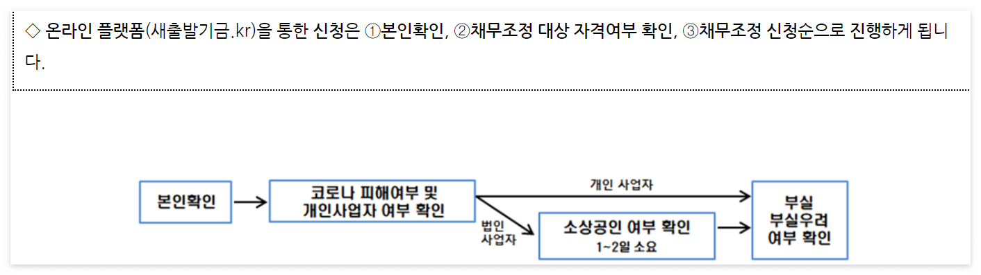 코로나19로 인해 피해를 보고 상환하는데 어려움을 겪는 자영업자, 소상공인들의 상환 부담을 줄여주기 위해 정부에서 지원하는 소상공인 조정 프로그램입니다.