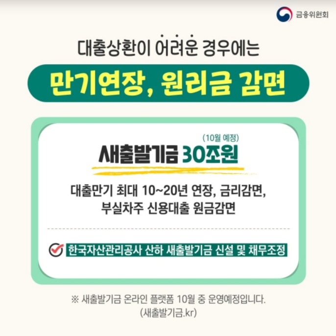 - 한국자산관리공사 산하 새출발기금 신설 및 채무조정