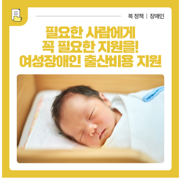 - 비장애 여성에 비해 출산(유산, 사산 포함) 시 비용이 추가 소요되는 여성장애인에게 출산비용을 지원하는 제도