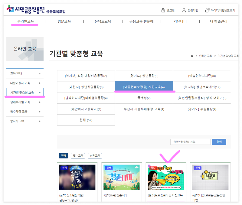 - 서민금융진흥원 금융교육포털에서 '보호 종료 아동 자립교육' 강의 수강 후 이수증 출력