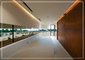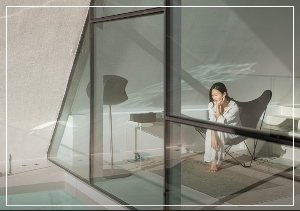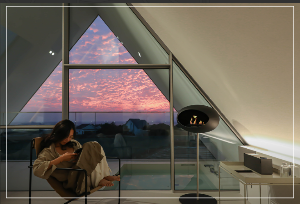 내부는 모던한 인테리어로 되어 있고, 나선형으로 되어 있는 2층 연결 계단을 올라가면 피라미드 모양의 풍경뷰가 눈에 들어옵니다.