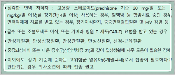 - 이외 의사 소견에 따라 고위험군으로서 접종이 필요하다고 판단되는 영유아